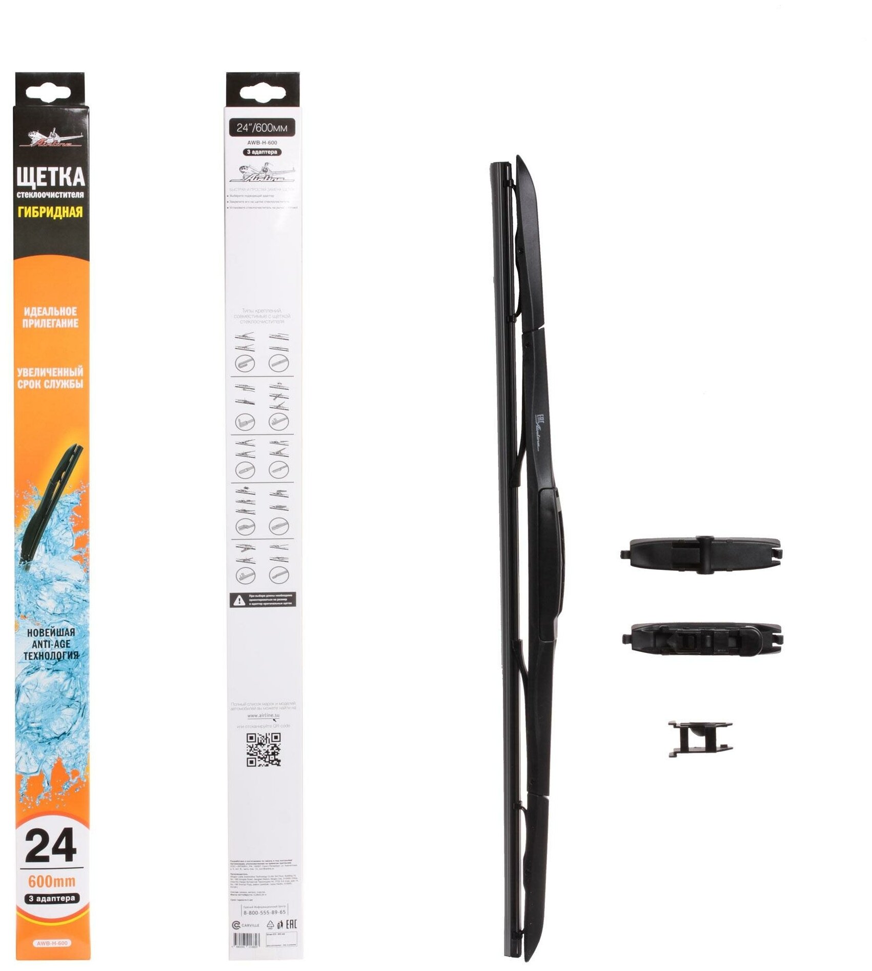 Щетка стеклоочистителя гибридная 600 мм (24), 8 адаптеров Airline AWBH600