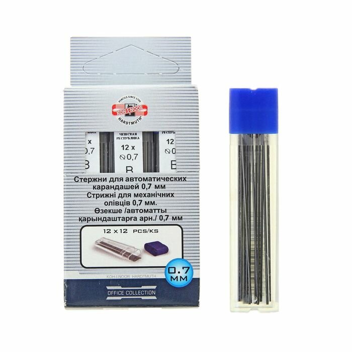 Грифели для механических карандашей, 0.7 мм, Koh-I-Noor 4162 B, в футляре, 12 набор