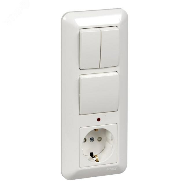 Блок СП БК-2 ВР-008А Прима (1кл+2кл выкл.+роз. с заземл.) (опт. упак) бел. SchE SCHNEIDER ELECTRIC BK2VR-008A-B (1 шт.)