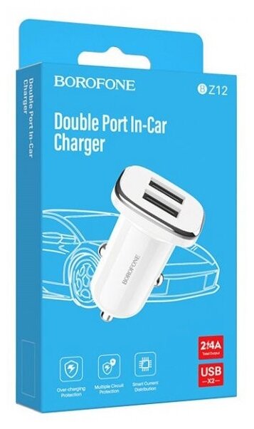Автомобильное зарядное устройство Borofone BZ12 Lasting power 2xUSB 2.4А - белый