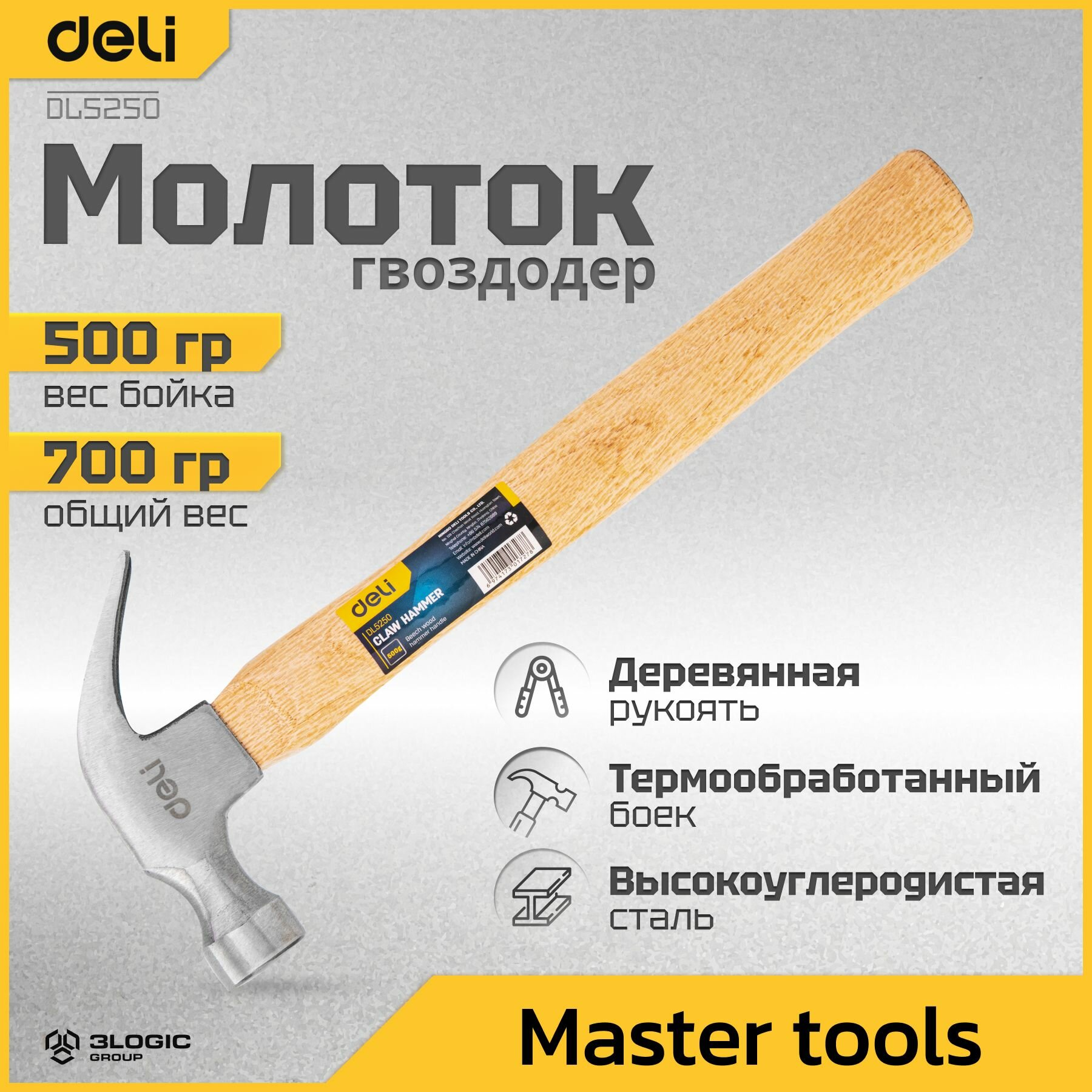 Отзывы на Молоток-гвоздодер Deli DL5250 500гр (330мм, деревянная рукоять)