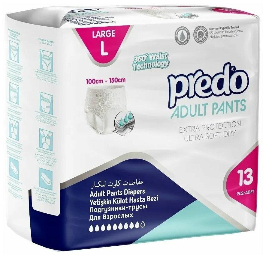 Подгузники-трусы для взрослых Predo размер L (100-150 см), 13 шт .