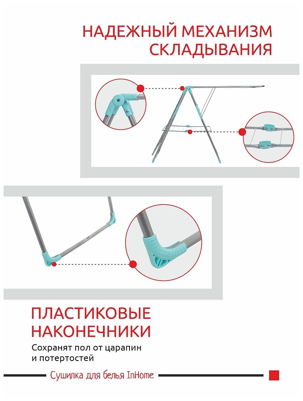Сушилка для белья InHome напольная раскладная,181х51х93 см, 21 м снежная королева мятный INCD3/3 .
