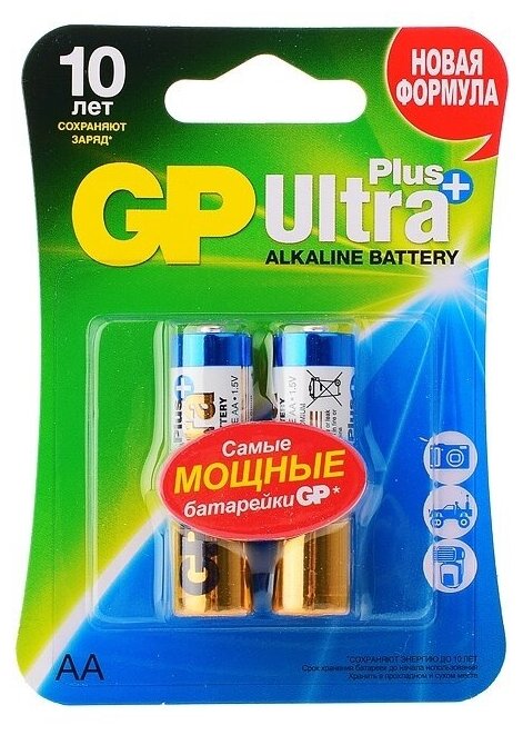 Батарейка алкалиновая GP Ultra Plus Alkaline 15А АA - 2 шт. на блистере информация: