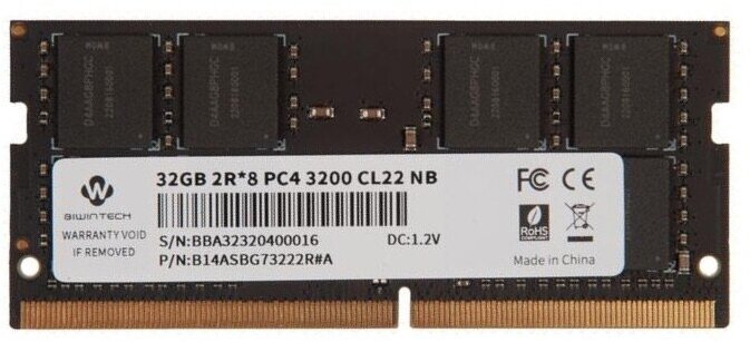 Модуль памяти DDR4 SO-DIMM 32Gb DDR3200 BiwinTech (B14ASBG73222R#A) информация: