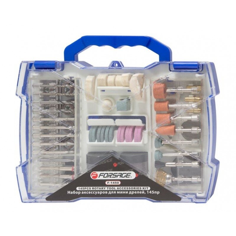 10 цен на Набор аксессуаров для мини-дрелей, 145пр., в пласт. кейсе Forsage F-1450