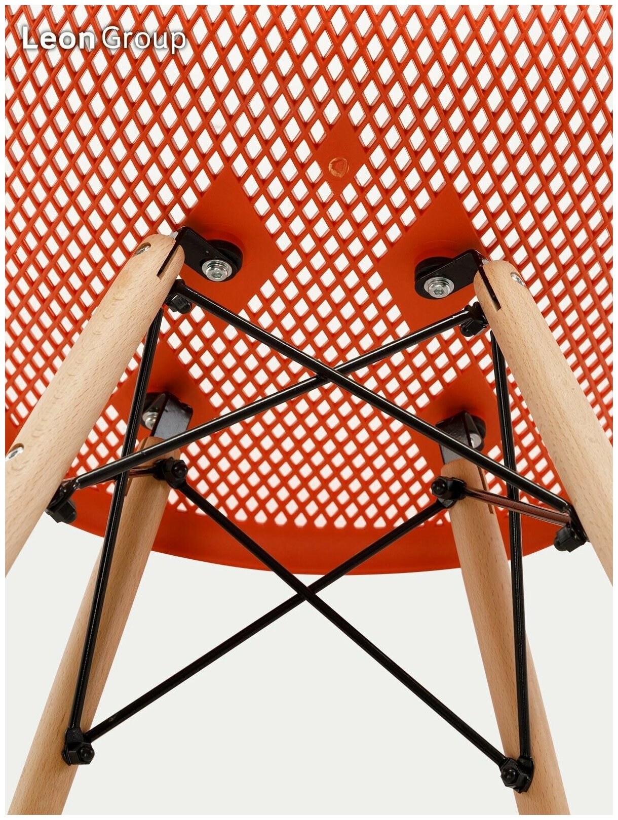 Стул ажурный LEON GROUP в стиле EAMES DSW для кухни со спинкой с деревянными ножками, 1 шт, красно- оранжевый