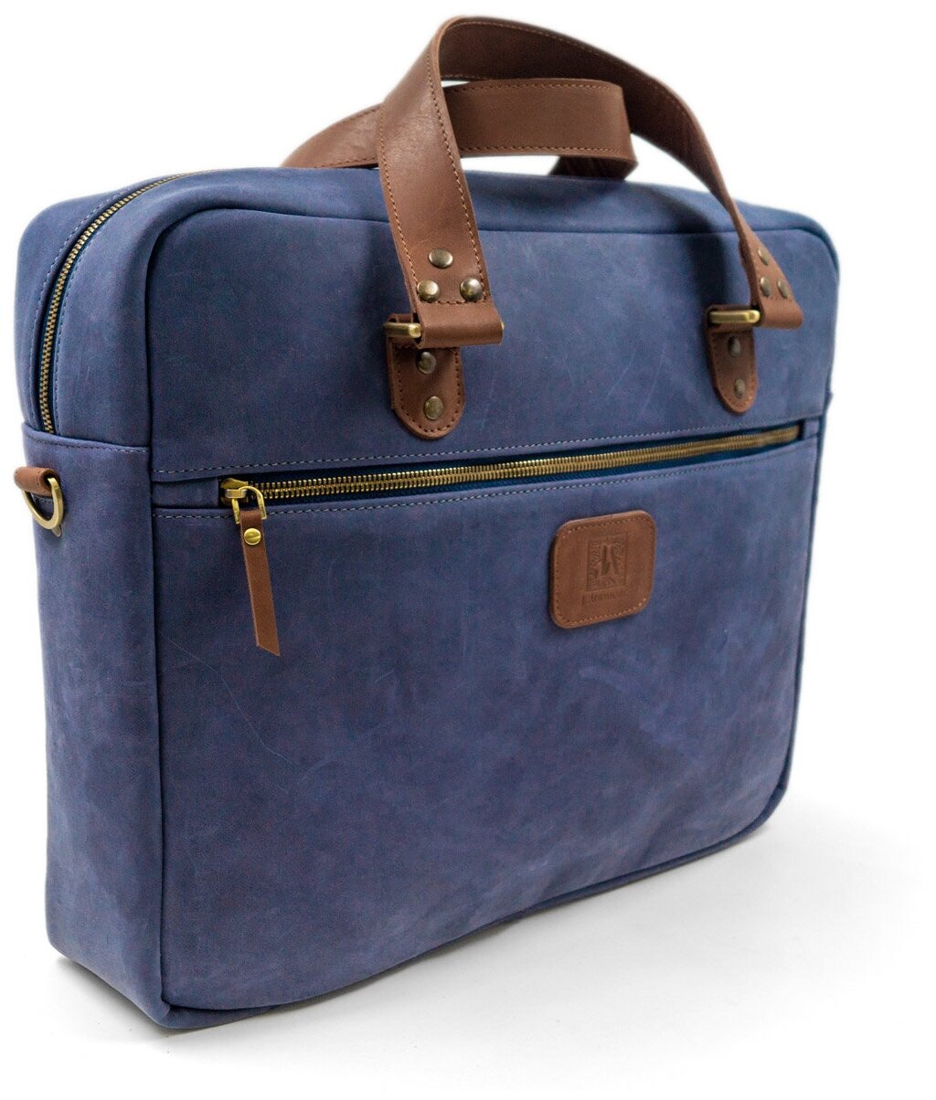 Небольшая кожаная сумка для ультрабука / макбука / ноутбука J.Audmorr до 14 дюймов, Cardiff S Saphire, натуральная кожа, ручная работа
