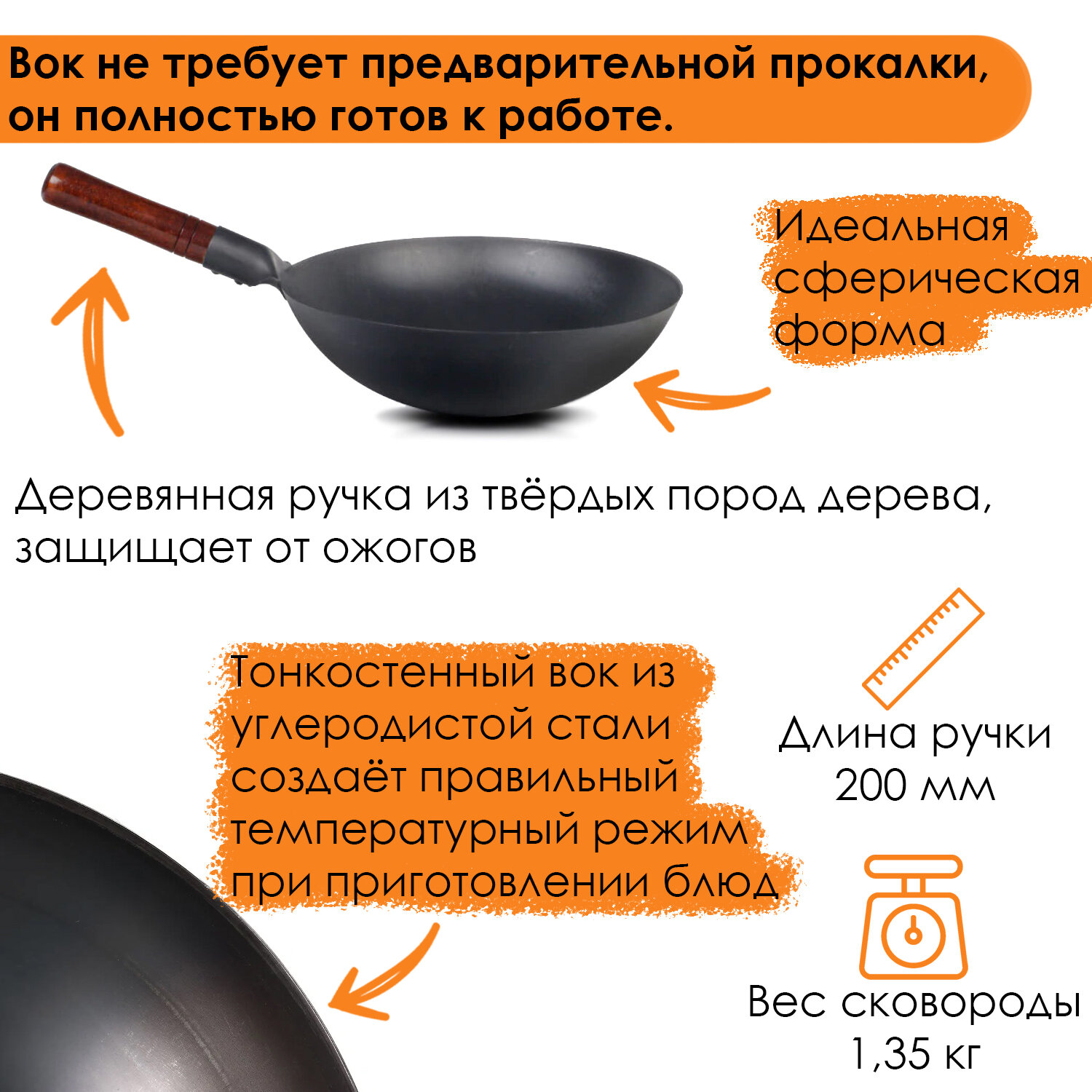 Сковорода-Вок (Wok) GetHof подготовленная с круглым дном 340D “Standart” 34 см информация: