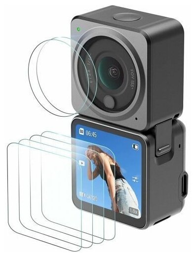 Защитные пленки на DJI Action 2 Dual-Screen Combo на объектив и экраны Telesin (2 шт на линзу, 4 шт на экраны) информация: