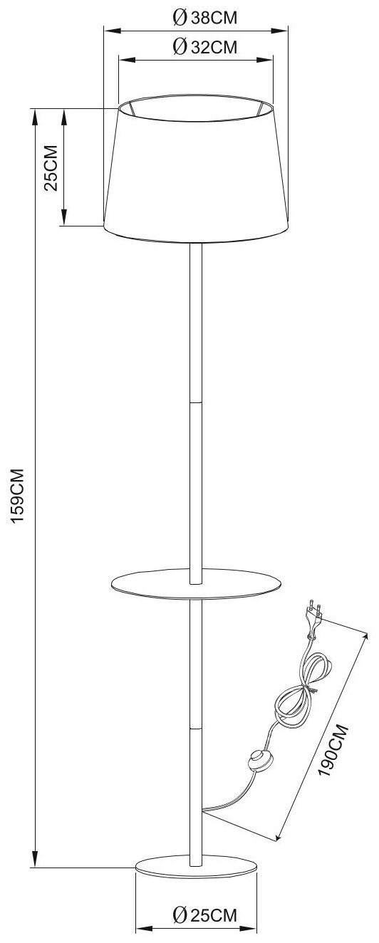 | Диаметр плафона/абажура | 38 см |