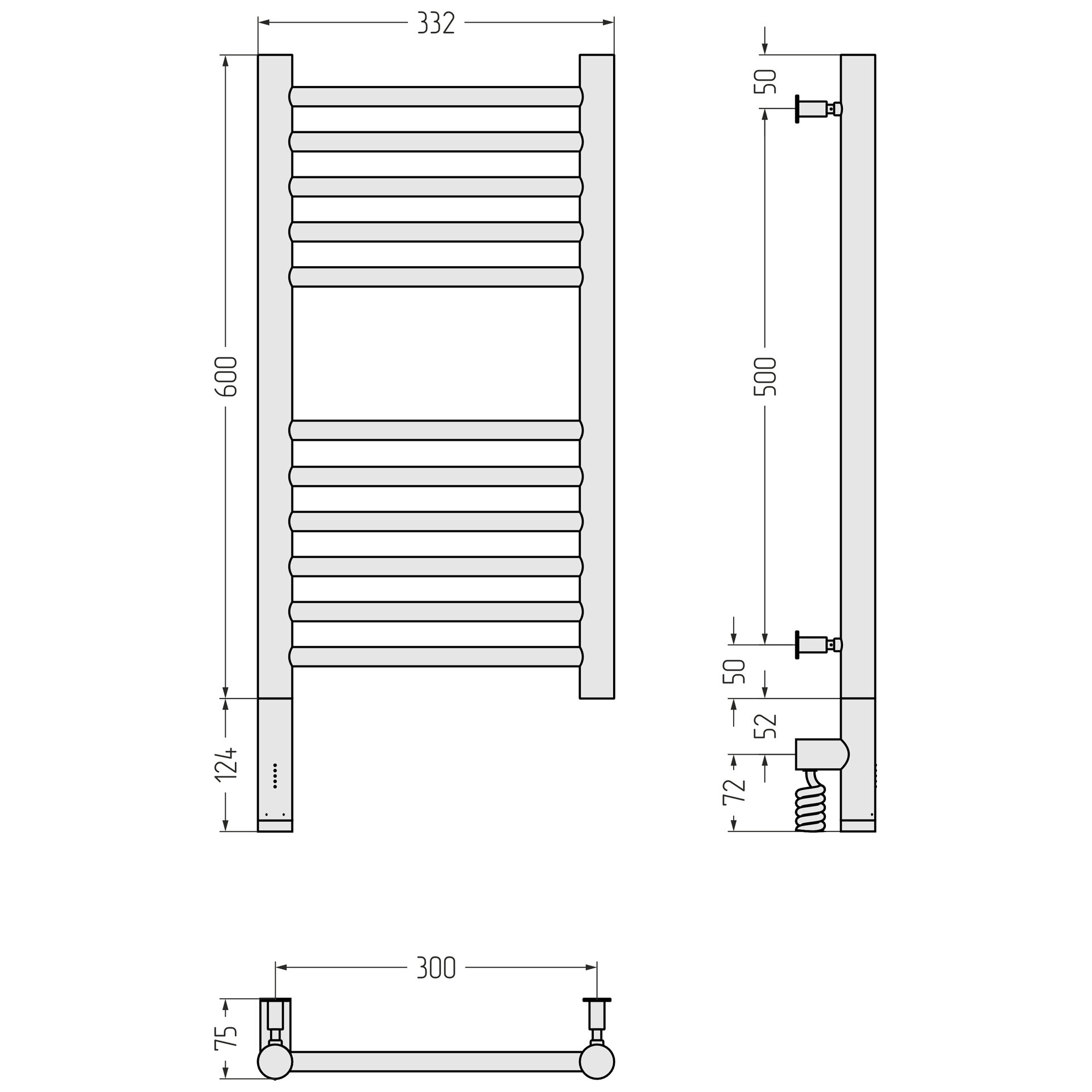 Полотенцесушитель электрический Сунержа Богема 3.0 прямая 600х300 МЭМ левый Матовый чёрный информация: