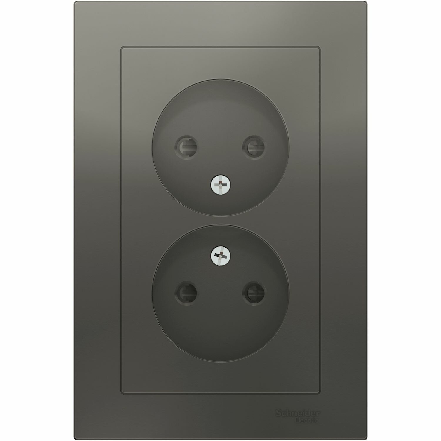 Розетка двойная в сборе Schneider Electric AtlasDesign без заземления, без шторок, 16А Грифель (комплект 8шт)