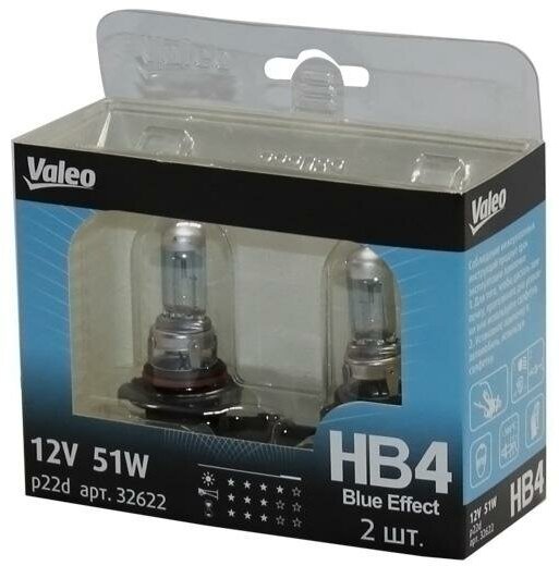 Лампа 12v Hb4 51w Valeo Blue Effect 2 Шт. Duobox 032 622 Valeo арт. 032 622