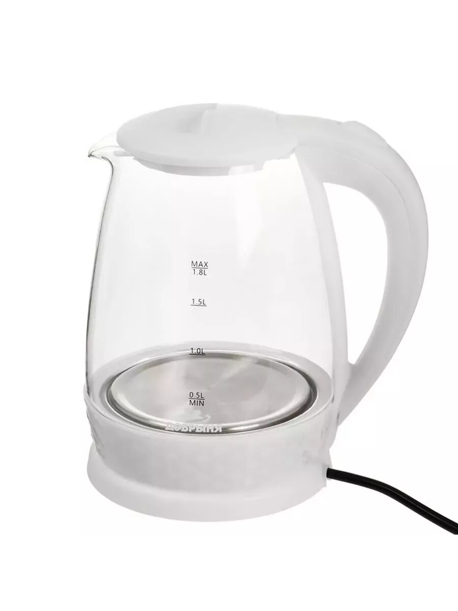 Чайник электрический "Добрыня" DO-1252W, стекло, 1.8 л, 1800 Вт, белый 1 966 ₽