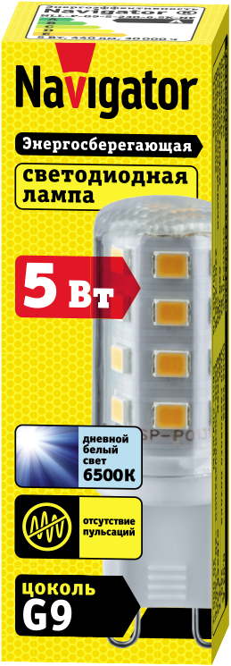 Лампа Navigator NLL-P-G9-5-230-6.5K-NF без пульсаций 80253 информация: