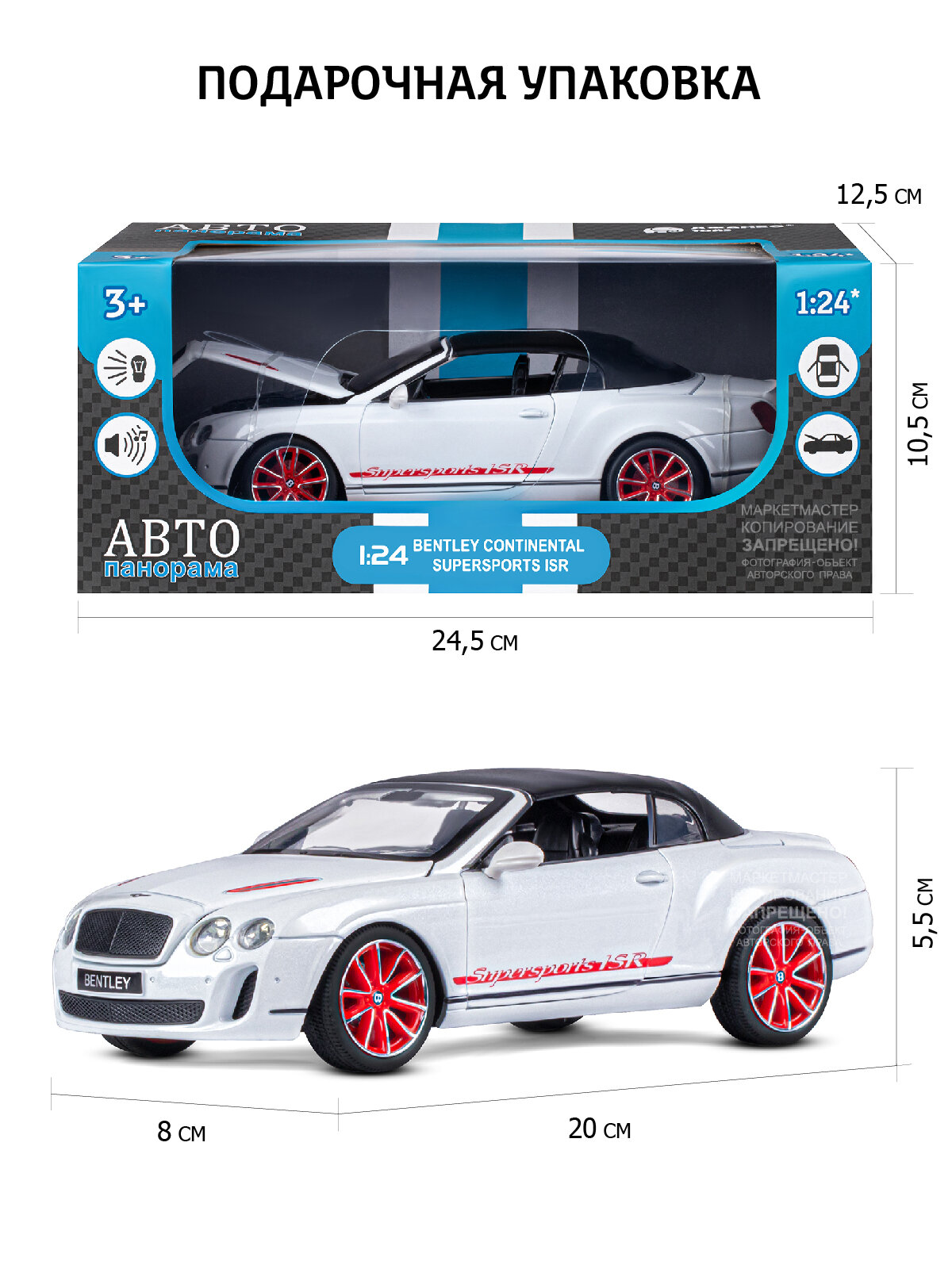 Машина "автопанорама" Bentley Continental Supersports ISR, белый, 1/24, в/к 24,5*12,5*10,5 см 1 934 ₽