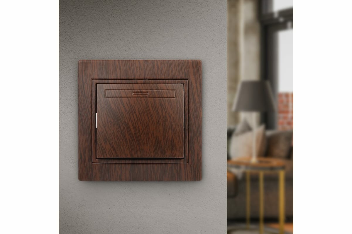 Выключатель 1-клавишный с индикатором ОП Минск, 10А, тёмное дерево