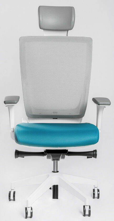 Эргономичное офисное кресло Falto Trium TRI-11WALM (каркас белый, спинка серая, сиденье синее)