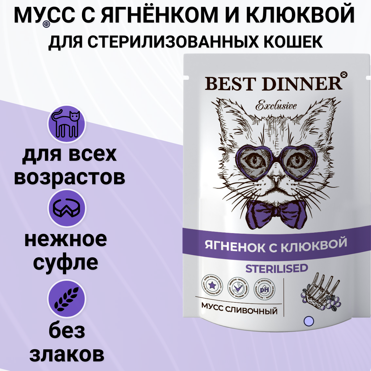 10 цен на BEST DINNER 85гр для стерилизованных кошек Эксклюзив мусс сливочный Ягненок с клюквой