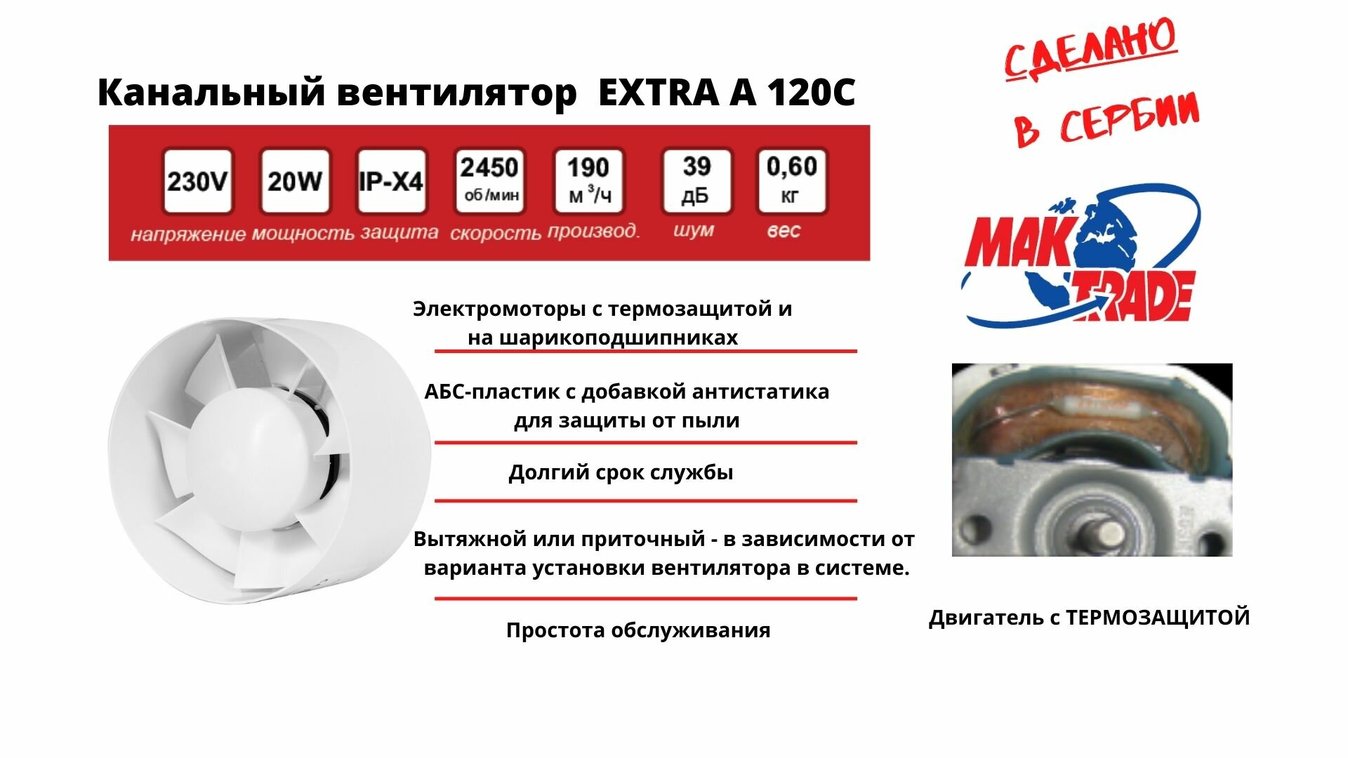 Канальный вытяжной вентилятор D120мм, MTG EXTRA A120C, Сербия информация:
