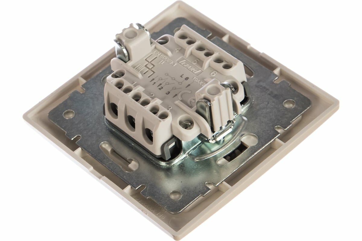10 цен на 701-3030-109 Выключатель 3-кл. СП Mira 10А со вставкой жемчуж./бел. перламутр. LEZARD
