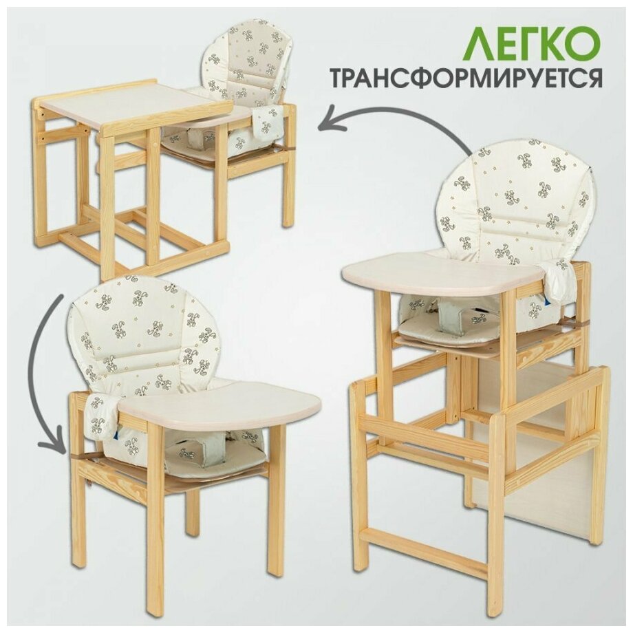 Стульчик для кормления детский с чехлом / Стол и стул трансформер 2 в 1 натуральное дерево/ Антошка-Алиса/ Розовые мишки