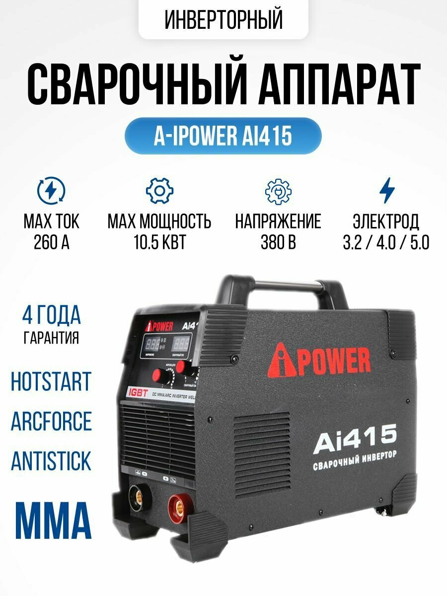 Инверторный сварочный аппарат A-IPOWER AI415, 380В 260А, 9,6кг, инвертор для MMA ручной дуговой сварки