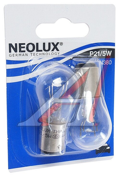 NEOLUX N380-02B ламп накаливания блистер P21/5W 12V 21/5W BAY15d Standart (стандартные характеристики)