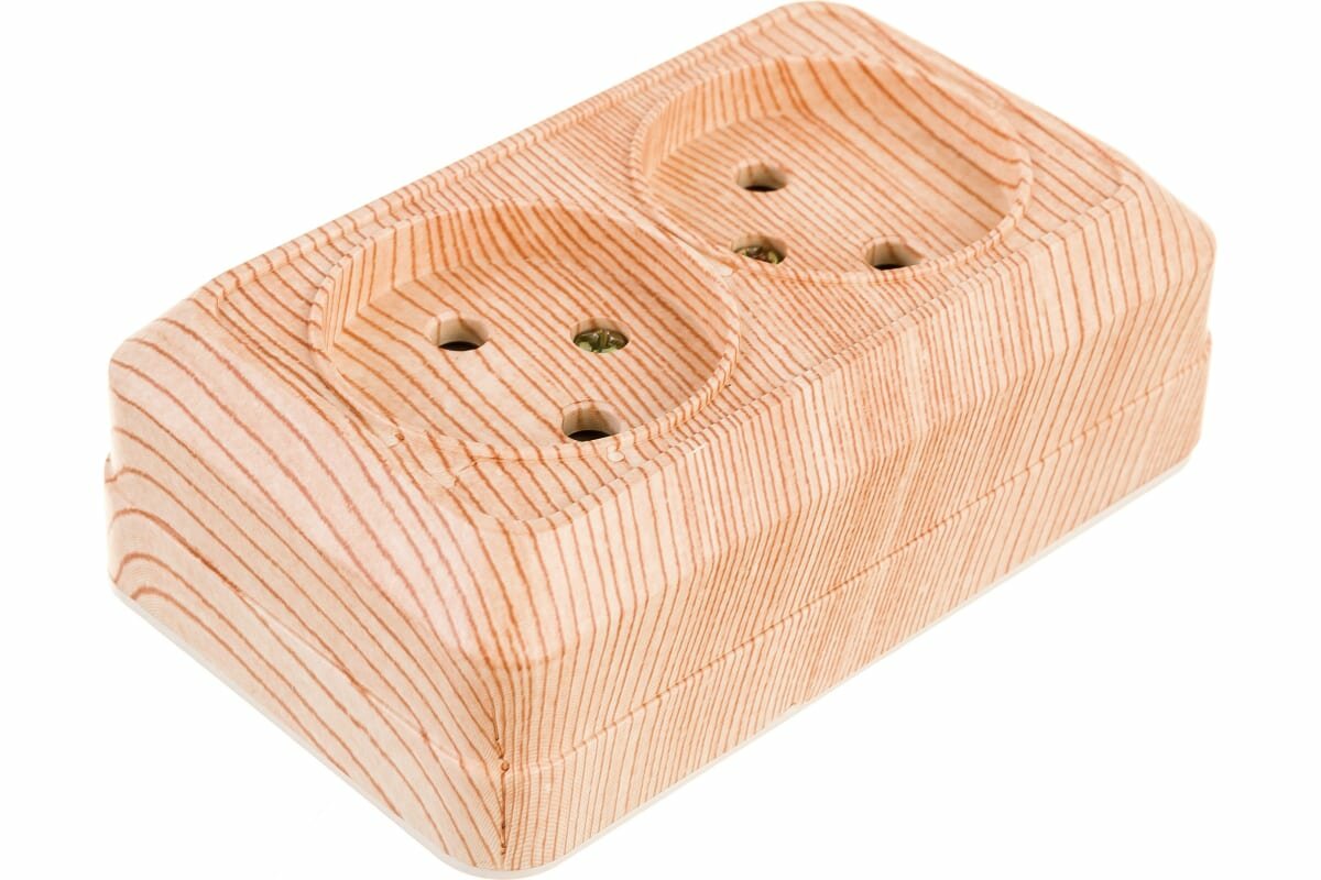 Розетка двойная наружная для открытой проводки без заземления цвет дерево сосна