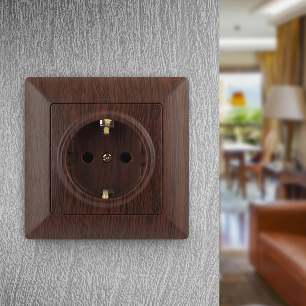 Типы/Электротовары/Розетки ЭРА Розетка ЭРА Intro Solo Schuko 2P+E 16A 250V дерево 4-202-11 Б0043318