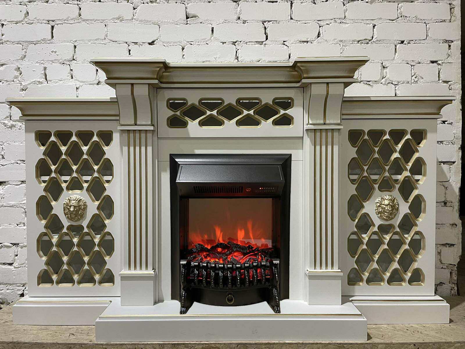 Электрокамин FlameKamin Асгард WT (с патина золото) с очагом Fobos (камин электрический)
