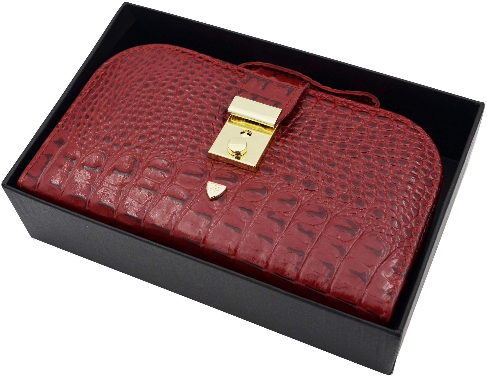 Маникюрный набор Zinger MS-1101-BG, позолоченный/темно-красный крокодил, 12 предметов