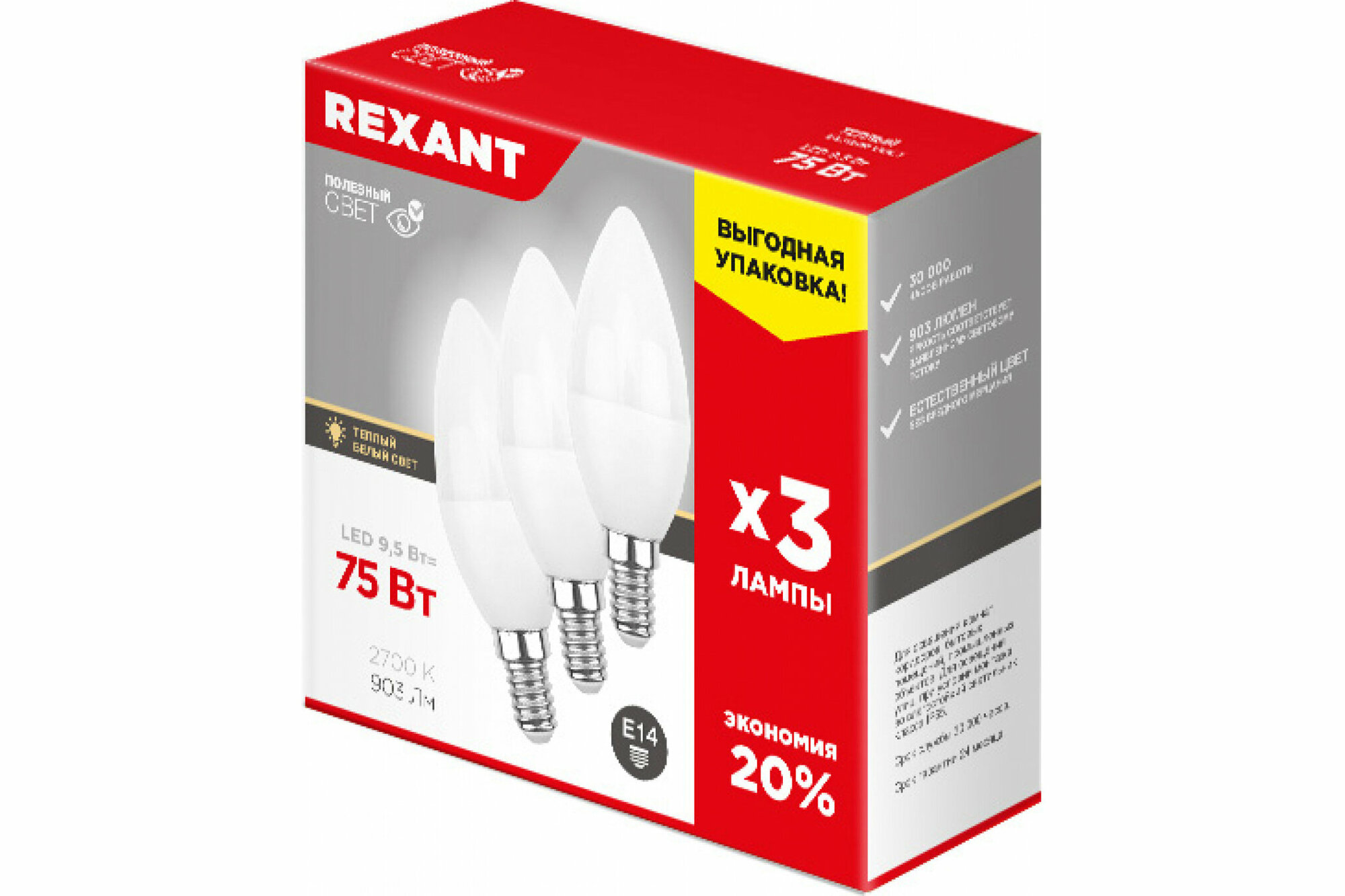 10 цен на Лампа светодиодная REXANT 604-023, E14, CN, 9.5 Вт, 6500 К