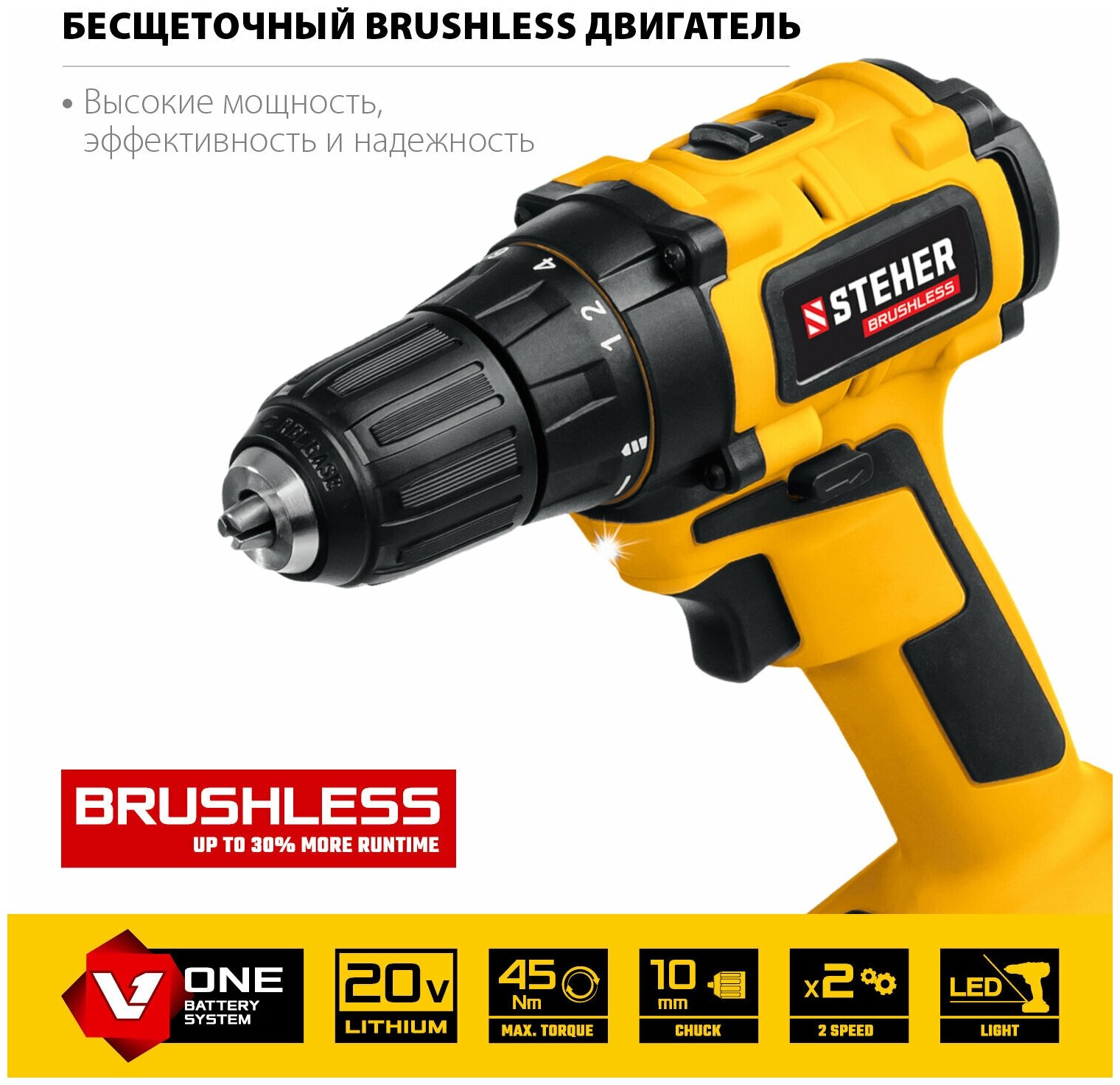 STEHER Бесщёточная дрель-шуруповерт, в кейсе. CDB-200-1 информация: