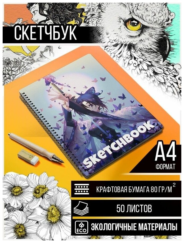 Отзывы на Скетчбук, Блокнот для рисования A4 50 крафт листов Игра Genshin Impact - 2092