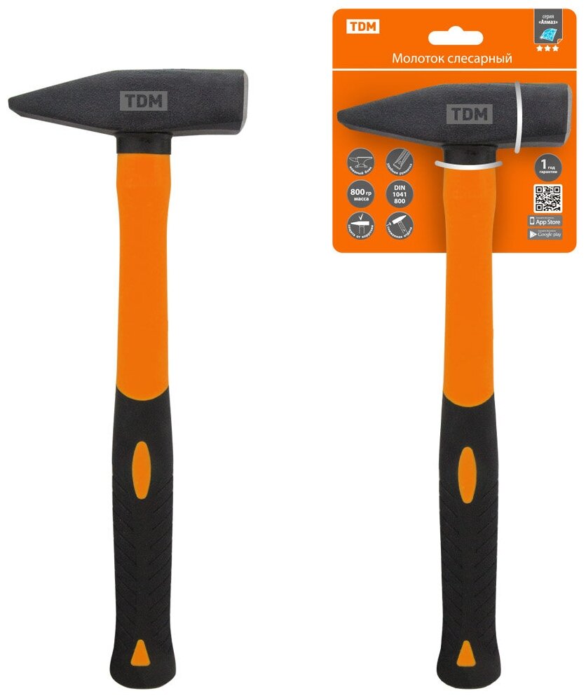 TDM Молоток слесарный, 800 гр, кованый, с усилен. прорезиненной фиберглассовой рукояткой Алмаз