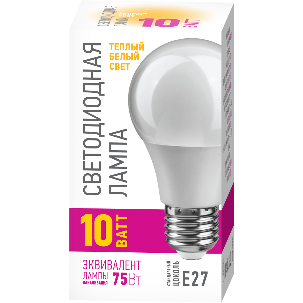 (10 шт.) Светодиодная лампочка онлайт промо ЛОН А55 E27 10W (750lm) 2700K 2K 98x55 OLL-A55-10-230-2.7K-E27-PROMO, 82910 Теплый белый. Цоколь E27 1 134 ₽