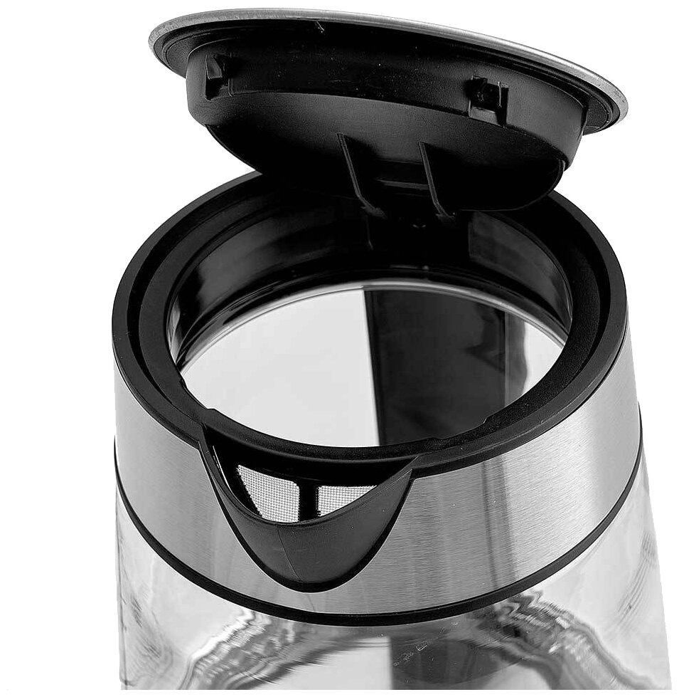 Чайник DELTA LUX DE-1004 корпус из жаропрочного стекла, черный нерж.: 2200Вт, 1,7л