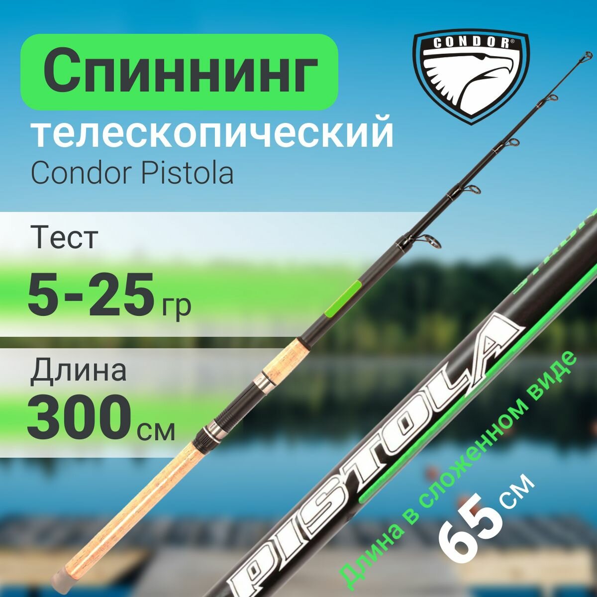 Отзывы на Спиннинг Condor Pistola длина 3.00 м, тест 5-25 гр стеклопластик, телескопический