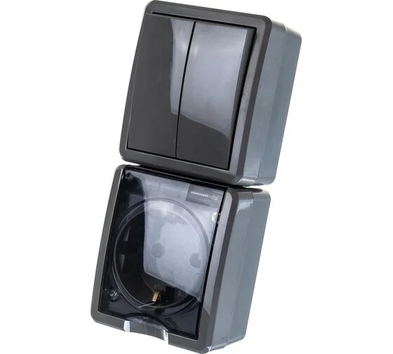 | Дополнительная информация | Блок 1-клавишный выключатель и розетка ЭРА Эксперт IP54 вертикальный с/з серый |