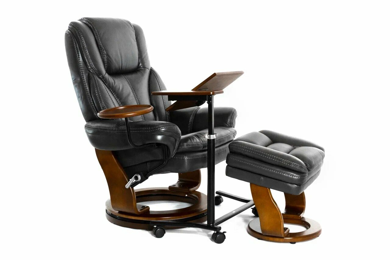 10 цен на Механический реклайнер из натуральной кожи с пуфом для ног Falto Relax Hana 7753WB, цвет черный