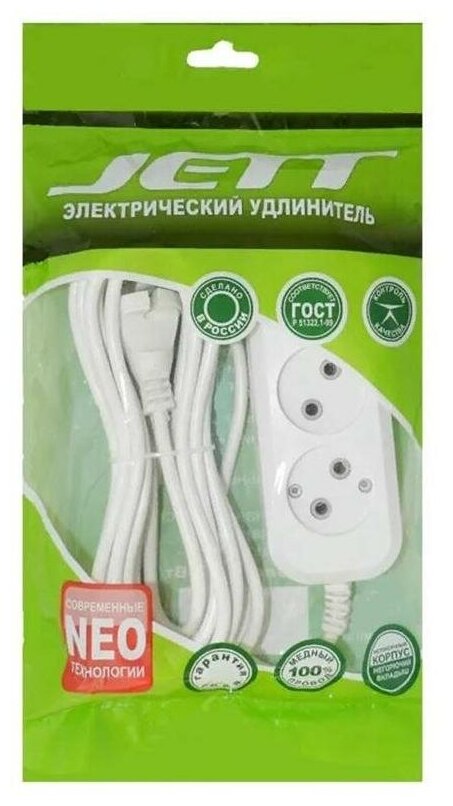 Отзывы на Удлинитель Jett 155-105 РС-2 (провод ПВС 2х0.75), 2 розетки, 5 м, б/з, 10А / 2200 Вт