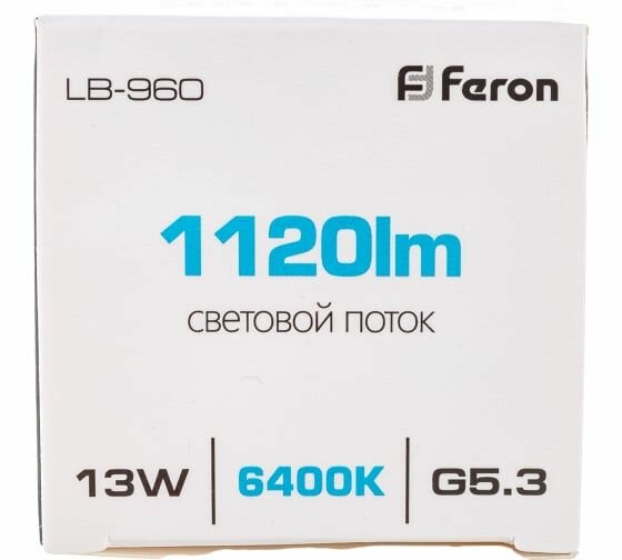 Feron Лампа светодиодная, (13W) 230V G5.3 6400K MR16, LB-960 38190 1 594 ₽