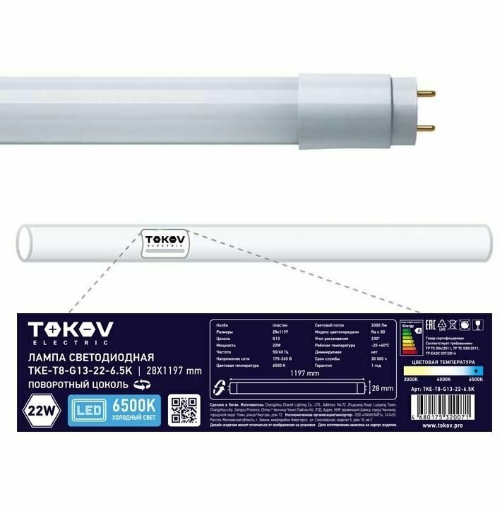 TOKOV ELECTRIC Лампа светодиодная 22Вт линейная T8 6500К G13 176-264В TOKOV ELECTRIC TKE-T8-G13-22-6.5K информация: