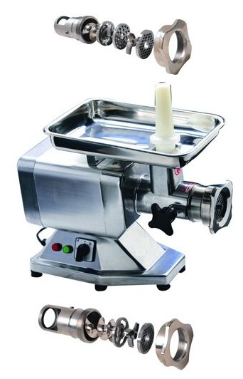 | Дополнительная информация | производительность 300 кг/ч; в комплекте 1 подрезной нож, 2 двойных ножа, 2 решетки с отверстиями диаметром 8 и 5 мм |
