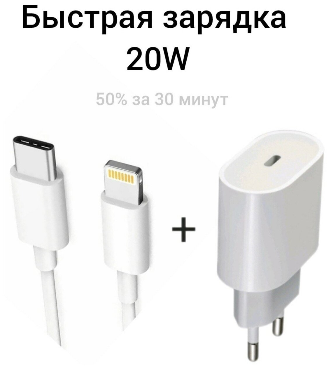 Быстрое сетевое зарядное устройство для айфон 20W для Apple (кабель type-c - lightning 1 м + адаптер)