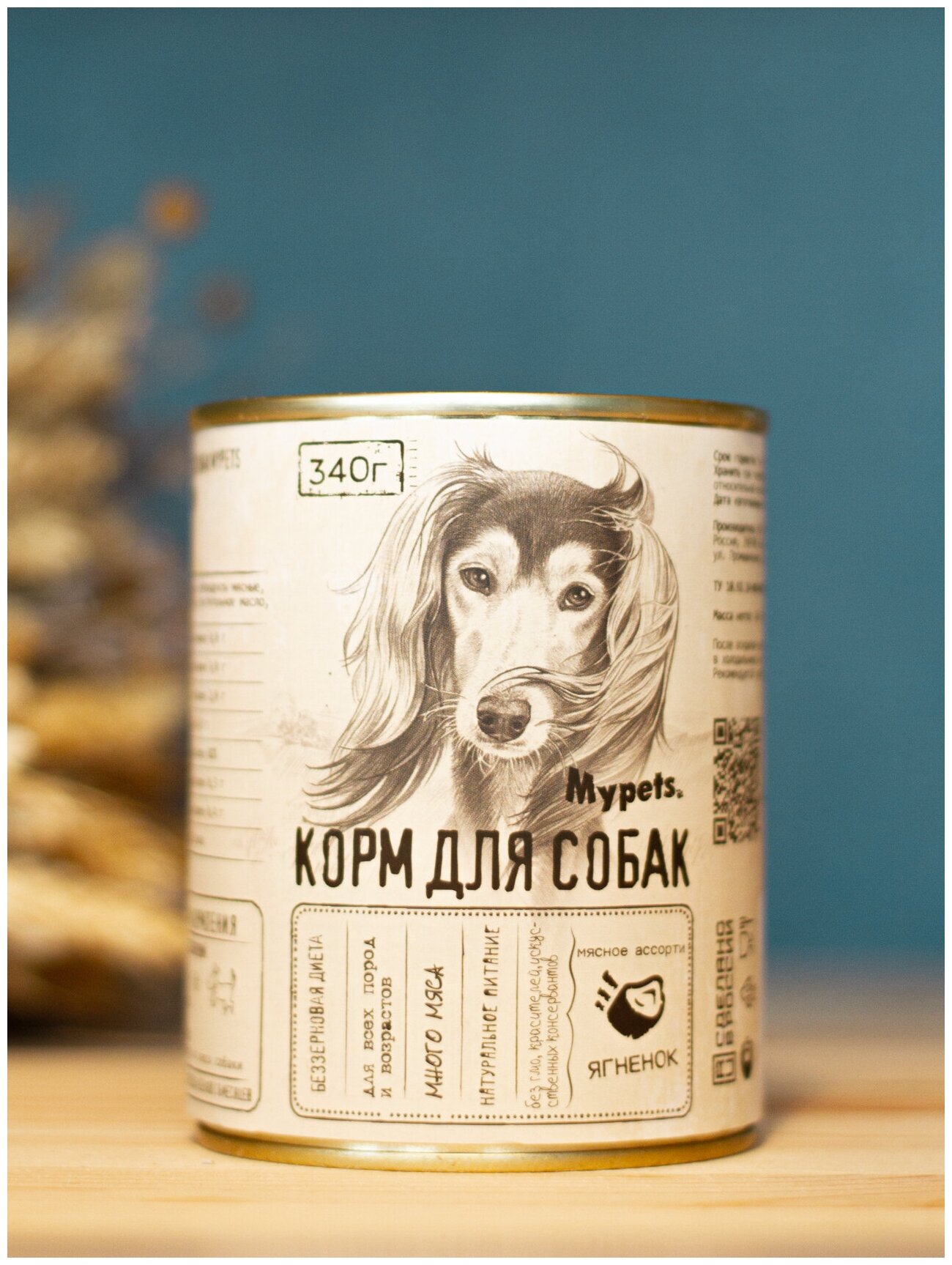 Корм для собак MYPETS мясное ассорти с ягненком, банка 340г информация: