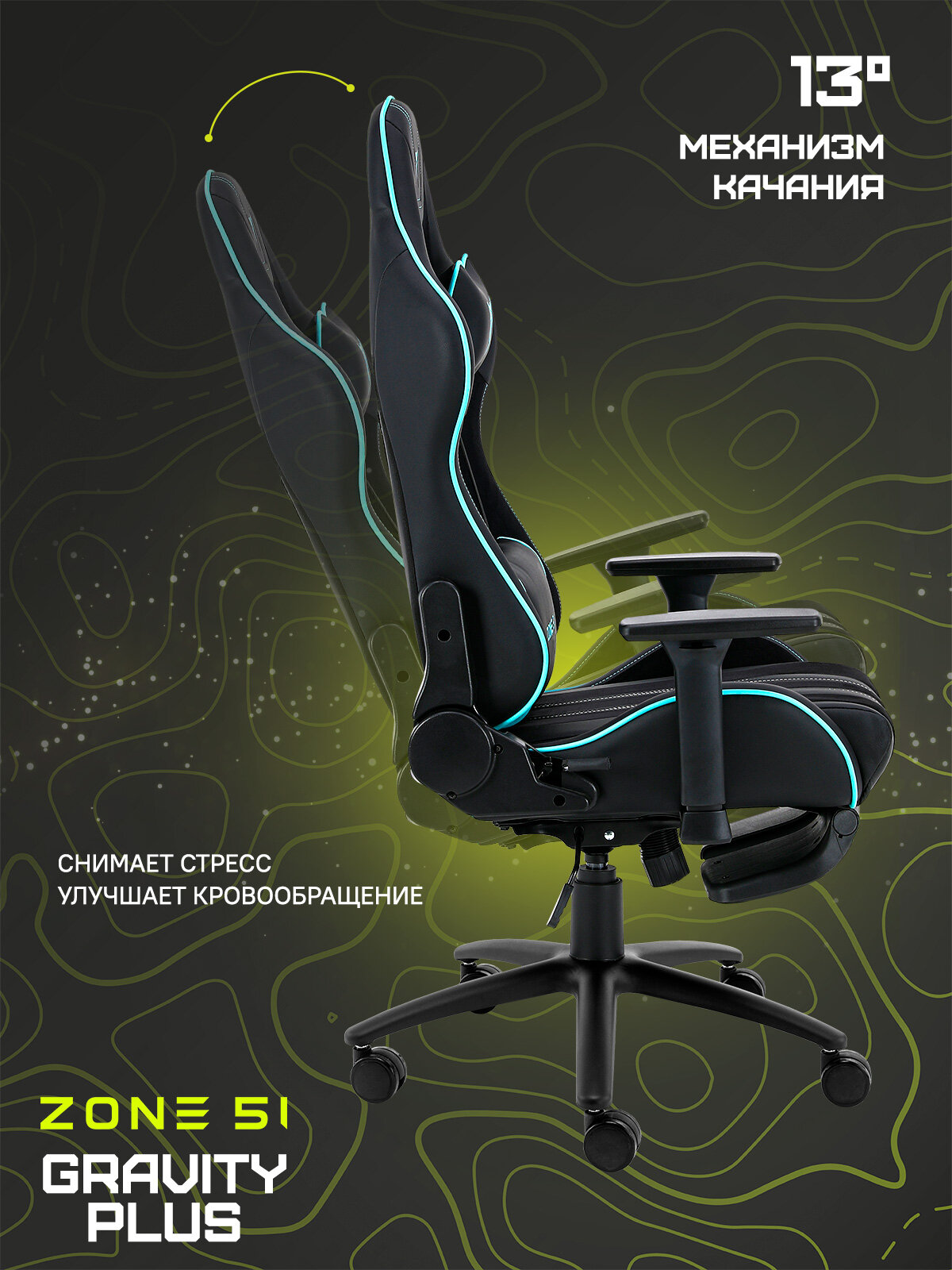 Кресло компьютерное игровое ZONE 51 GRAVITY PLUS Black-Cyan информация: