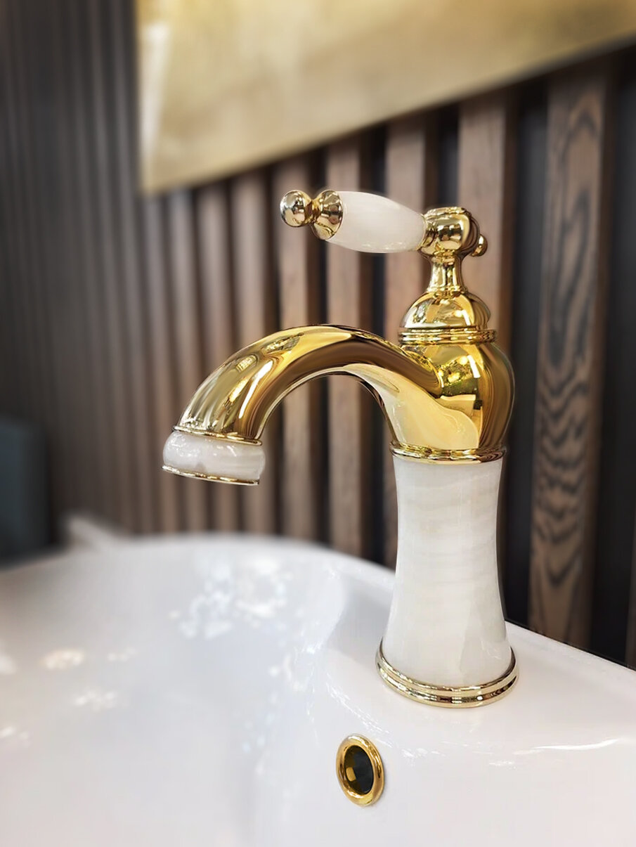 Смеситель для раковины Frap F1086-3, латунный, покрытие золотой сатин